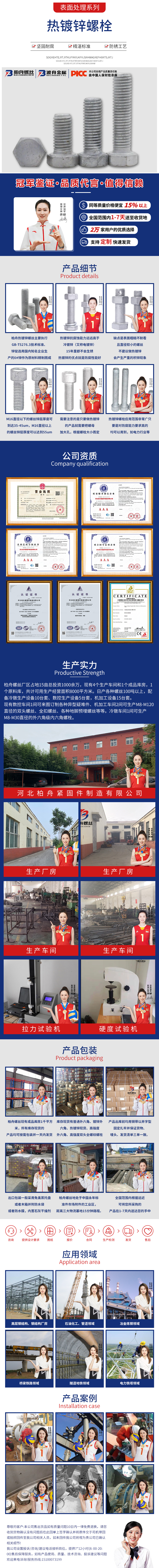 產(chǎn)品介紹:柏舟熱鍍鋅螺絲主要執(zhí)行GB-T5276 3技術(shù)標(biāo)準(zhǔn)、鋅錠選用國內(nèi)知名企業(yè)生產(chǎn)的0 鋅作為原材料精制而成,熱鍍鋅抗腐蝕能力遠(yuǎn)遠(yuǎn)高于冷鍍鋅(又稱電鍍鋅)。15年里都不會生銹。熱鍍鋅的優(yōu)點就是防腐性能好。缺點是表面粗糙不耐看且直徑較小的螺絲不建議做熱鍍鋅會產(chǎn)生嚴(yán)重的積鋅現(xiàn)象。M16直徑以下的螺絲鋅層厚度可以到達(dá)35-45um,M16直徑以上的螺絲鋅層厚度可以達(dá)到55um以上。