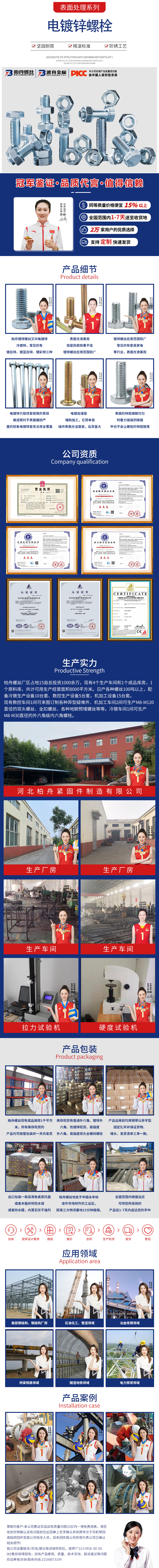 產(chǎn)品介紹:柏舟鍍鋅螺絲又叫電鍍鋅、冷鍍鋅,常見的有鍍白鋅、鍍藍(lán)白鋅、鍍彩鋅三種。表面光滑美觀,但是防腐效果不佳,需要注意的是10 9級(jí)以上的螺絲做電鍍鋅的時(shí)候很有可能產(chǎn)生清脆現(xiàn)象。鍍鋅螺絲應(yīng)用范圍較廣,常見的有家具家電等行業(yè)。