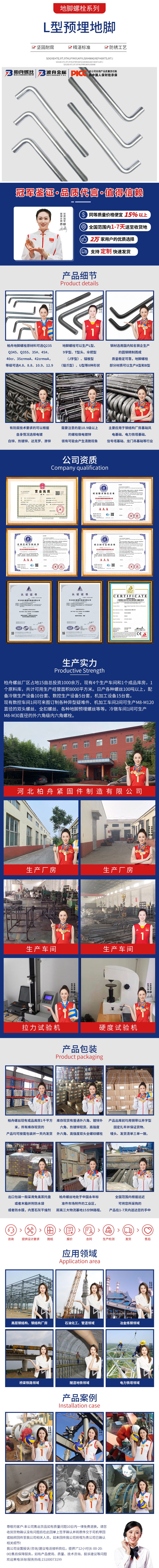 產(chǎn)品介紹:柏舟地腳螺栓原材料可選Q235、Q345、Q355、35 、45 、40cr、35crmoA、42crmoA,等級可選4 8、8 8、10 9、12 9。鋼材選用國內(nèi)知名鋼企生產(chǎn)的圓鋼精制而成,質(zhì)量穩(wěn)定可靠,地腳螺栓部分材質(zhì)可以生產(chǎn)A型和B型。有防腐技術(shù)要求的可以根據(jù)自身情況選擇電鍍白鋅、熱鍍鋅、達(dá)克羅、滲鋅,需要注意的是10 9級以上的螺栓做電鍍鋅很有可能會產(chǎn)生清脆現(xiàn)象。